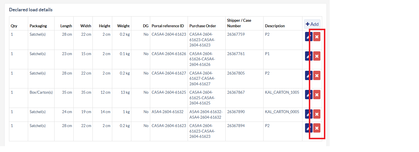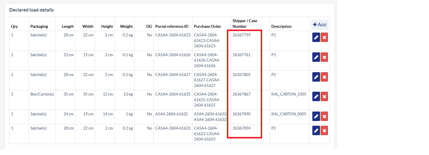 The reference found will be highlighted from the load details. (sample load shown below. The reference Komatsu will provide is the one on the shipper/case number column)